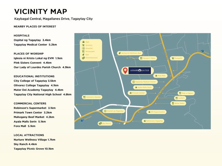 Prime location: A few minutes from Sky Ranch, Ayala Serin, Nurture Wellness Village, Picnic Grove, Balay Dako, Tagaytay Medical Center, and more.